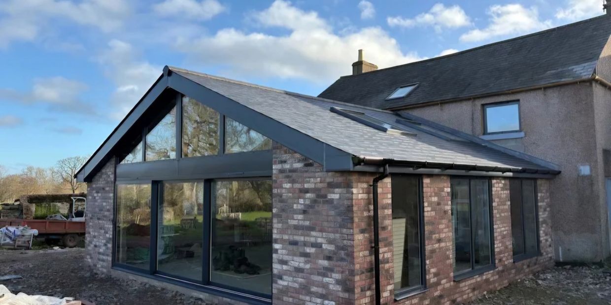 Windows in the Lakes was appointed to supply and install a full aluminium glazing package as part of the conversion of an old Cumbrian farm building near Brampton, Cumbria. The project required a careful balance between modern architectural glazing and the character of a traditional rural structure.